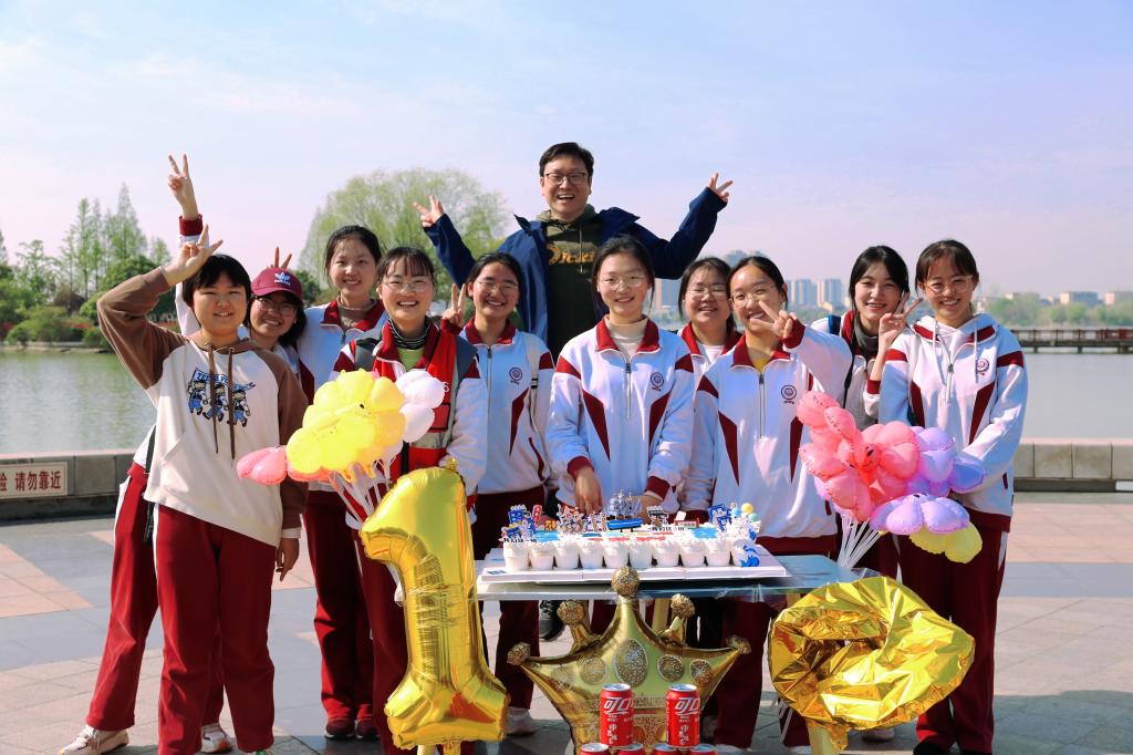 春(chūn)光裏的大龍湖湖畔,綠草茵茵,花團錦簇(cù)。細心的老師們為孩子們準備了成人禮慶祝蛋糕,贏得大(dà)家陣(zhèn)陣驚喜的歡呼。各(gè)種蛋糕造型別(bié)致,風格各異,或是方形的,寓意著老師希望大家做人做事方方正正;或是心形的,代表著孩子們對家長和老(lǎo)師的拳拳(quán)之心;或是花瓣形的,寄托著大(dà)家對美好青春的祝願……享(xiǎng)受完青(qīng)春的第一份甜(tián)蜜後,同學們堅定地踏上了環湖遠(yuǎn)足的旅(lǚ)程。
