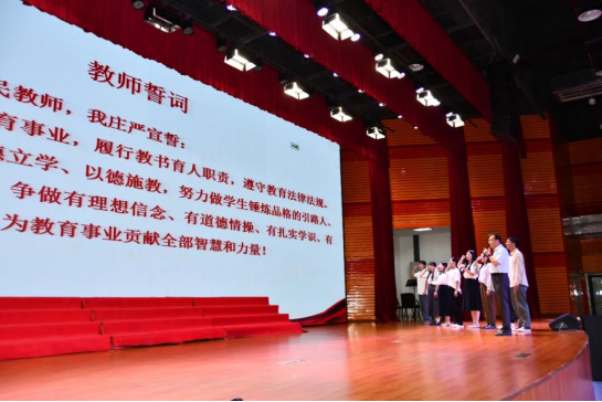 青藍同心,師道傳承(chéng)。甄宗秋副校長帶領(lǐng)2023年進校新教師作(zuò)入(rù)職宣(xuān)誓。