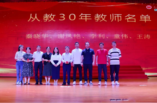 大(dà)會表彰了滿30年教齡的教職工,青年教師代表為他們呈送獎(jiǎng)章和證書。