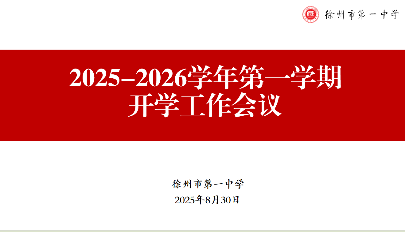 8月30日,徐州一中召開2025-2026學年第一學期開學工作會議。校黨委書記秦曉華作新學期工作報告,會(huì)議由校長魏全星主持。秦曉華書記以詳實的數(shù)據係統回顧了上學期和2025年暑期學校各項工作亮點和成效,帶領(lǐng)全體教(jiāo)職(zhí)工(gōng)學習了《教育強國建設綱要》《關於加強新時代中小學科學教育工作的意見》等文件精神,並對新學期重點工作任務(wù)作出了明確部署。