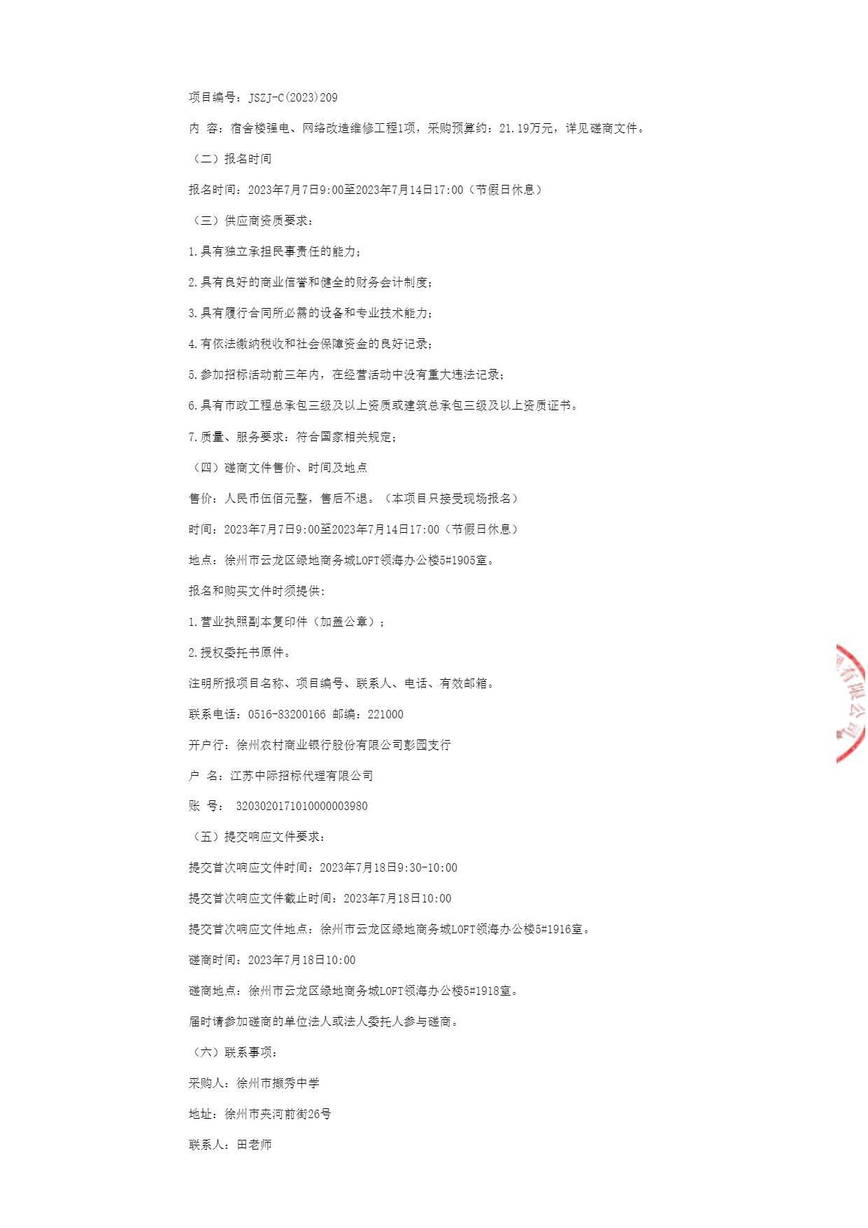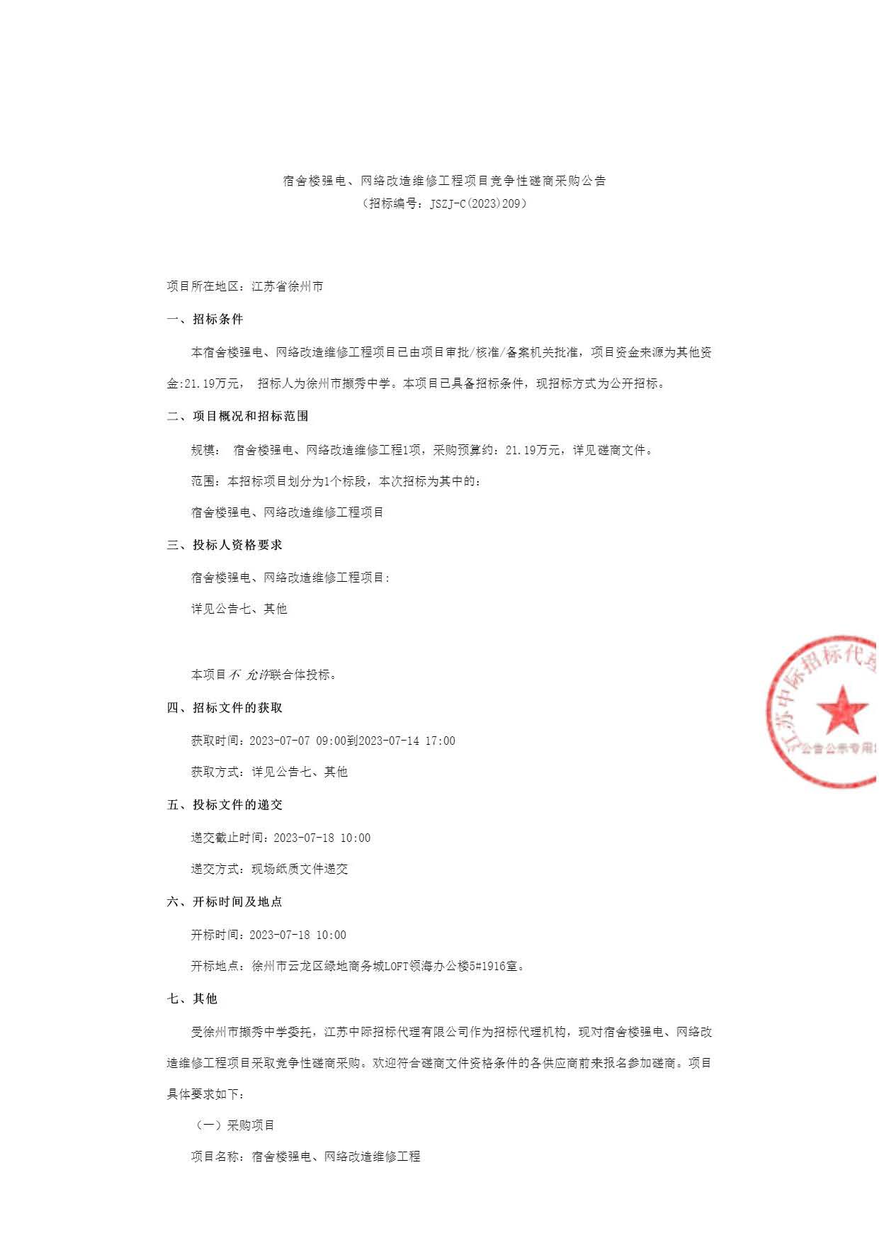 擷秀宿舍樓強電、網絡改造維修工程項目磋商(shāng)公告
