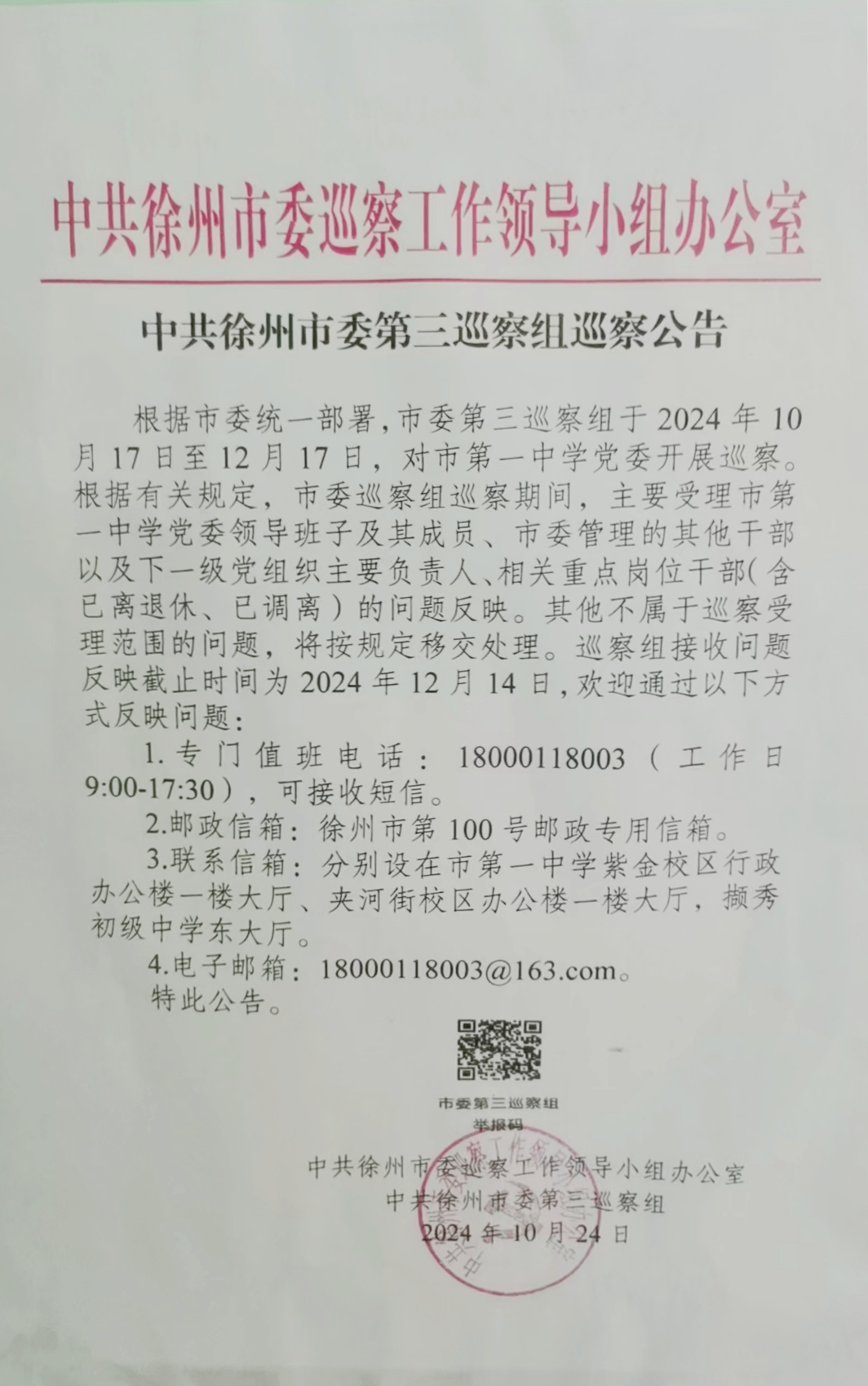 中共徐州市委第三巡察組(zǔ)巡察公告