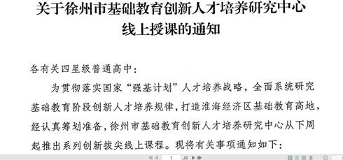 徐州市創(chuàng)新拔尖人才培養線上教學開局(jú)良好