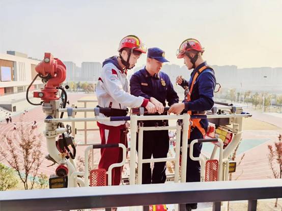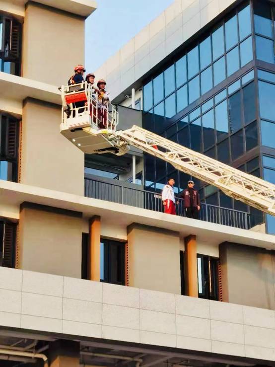 全(quán)部人員集中、清點完畢(bì)後,由(yóu)徐州市消防救援支隊進行消防營救現(xiàn)場(chǎng)演示及安全知識培訓。首先(xiān),消防人員現場開展高樓受困(kùn)人員逃生、被(bèi)困(kùn)人員轉移、高壓水槍(qiāng)滅火救(jiù)援演練。3名受困學生捂住(zhù)口鼻、揮動(dòng)紅旗在天台呼救,等待救援,消防人員用(yòng)消防升降雲梯解救,現(xiàn)場師生目不轉睛地關注著救援全過程,當被困學生順利解救至地麵時,現場師生不禁露(lù)出喜悅的表情,爆發出熱烈的掌聲。隨後,消防人(rén)員演示了高壓水槍滅火,現場師生紛紛拍手稱讚。接下來,徐州市消防救援支(zhī)隊特(tè)勤一中隊指導員楊文龍,為同學們做安全教育知識培訓。他從學生實際情況出發,講述了如何在宿舍(shě)、教學區注意用電安全,以及防火、救火(huǒ)、安全逃生技能,學(xué)生們紛紛表示(shì)受益匪淺。