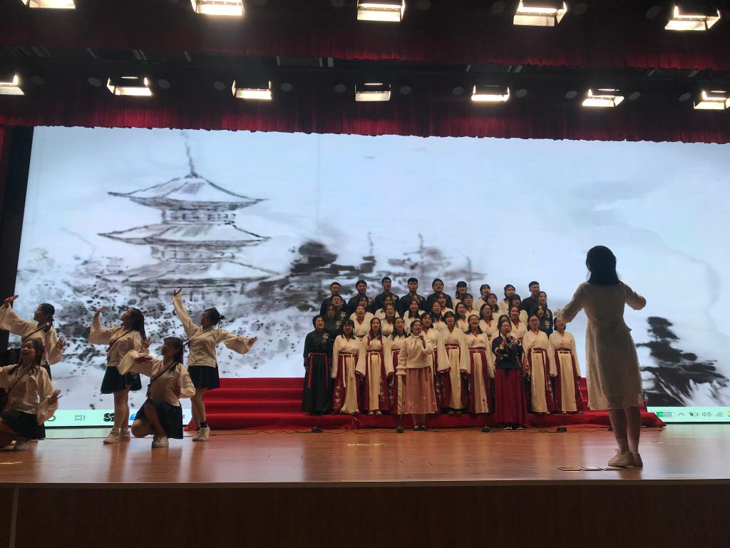 隨著優美的伴(bàn)奏響起,每個班級都使盡了渾身解數。除了一展歌(gē)喉以外,還有舞蹈,樂器,服裝道具等多種形式(shì)的表演(yǎn)映入眼簾,令人耳目一新。