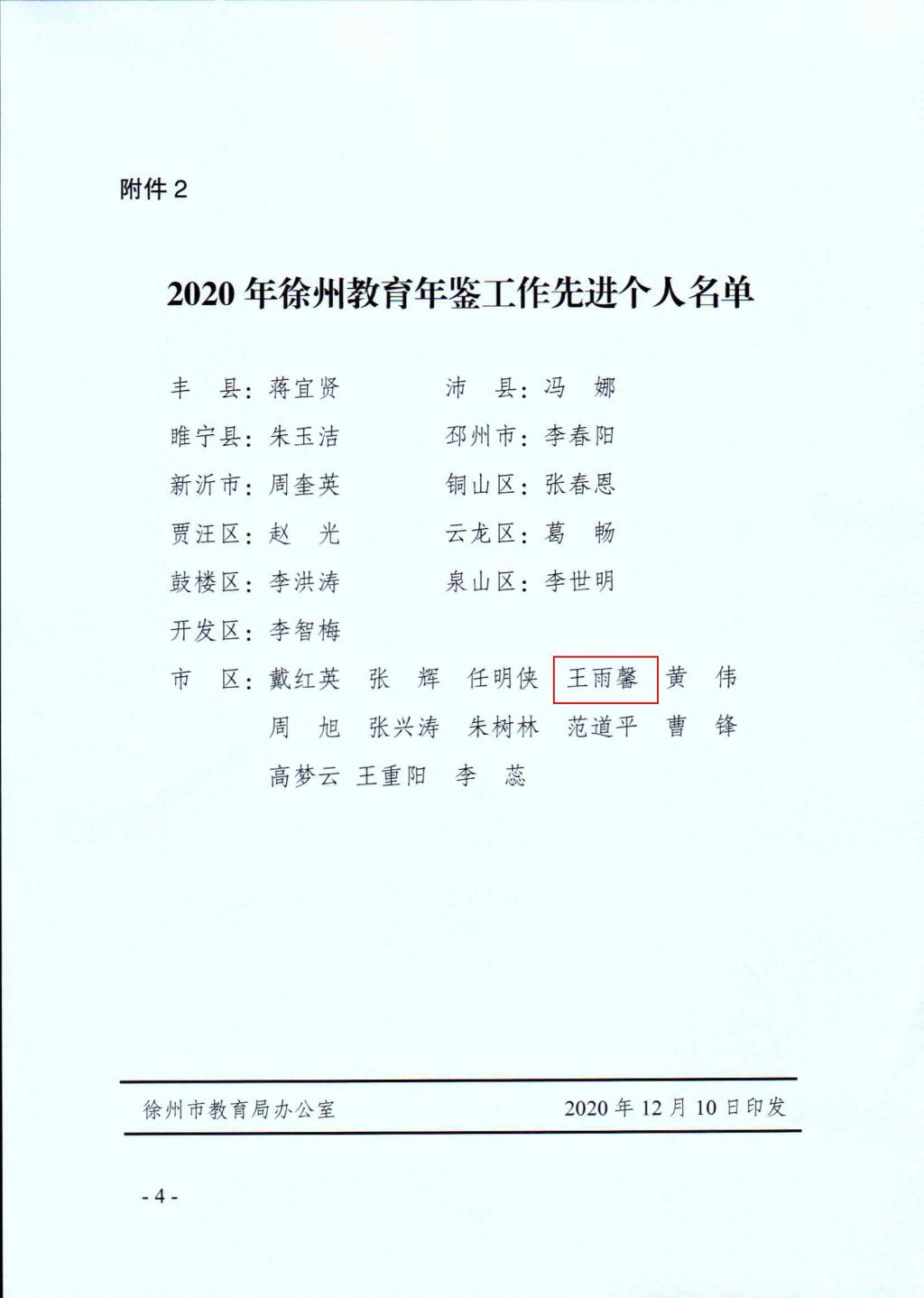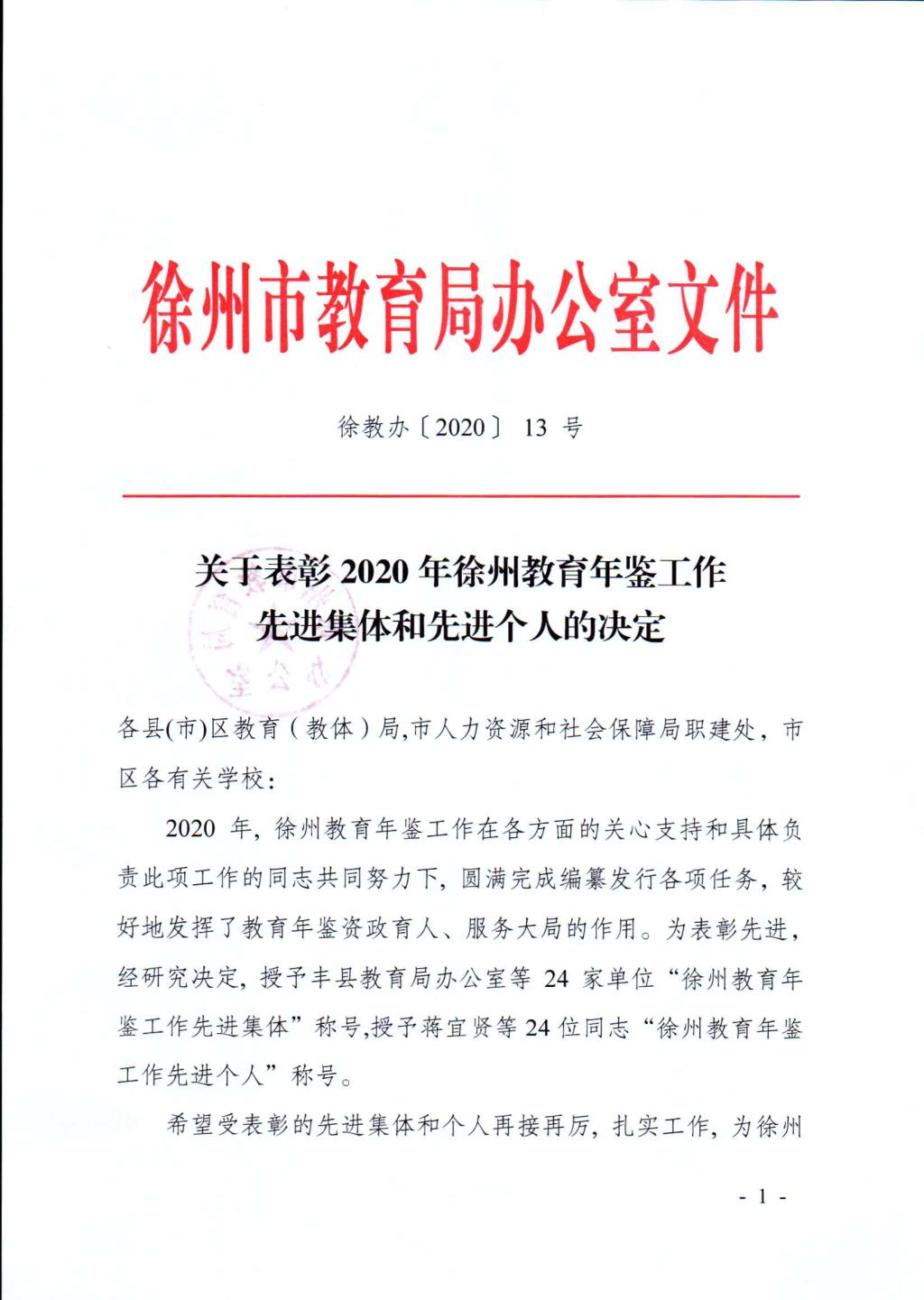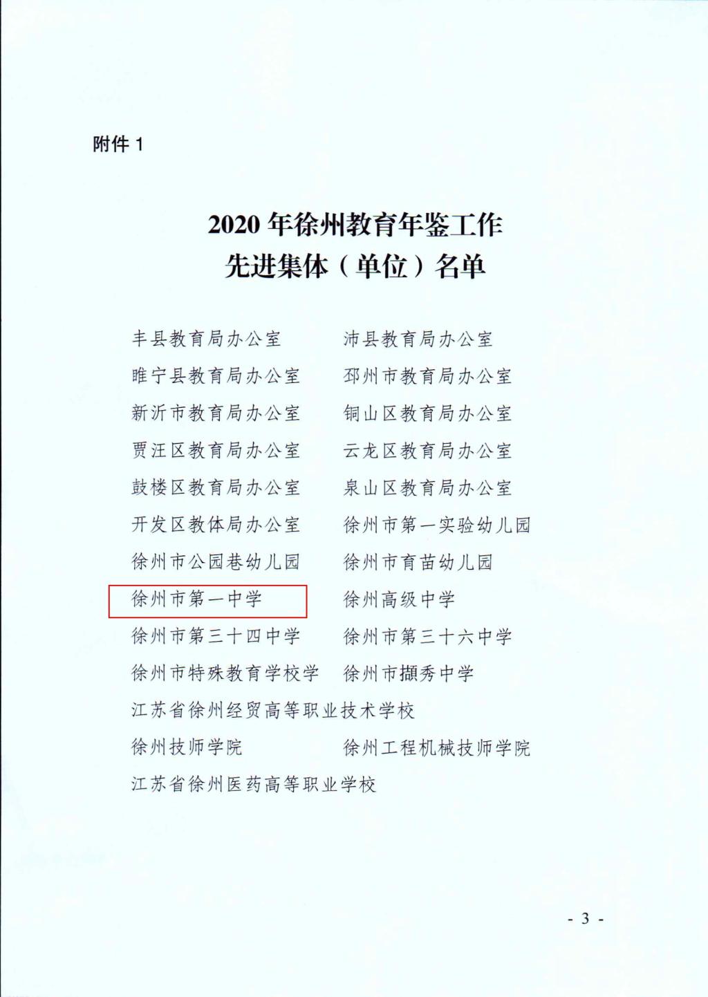 徐州一中榮獲(huò)2020年度教育(yù)年鑒工作先進集體(tǐ)榮譽稱號
