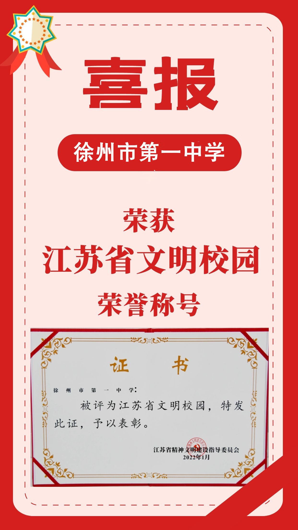徐州(zhōu)一中榮獲江蘇省文明(míng)校園榮譽稱號