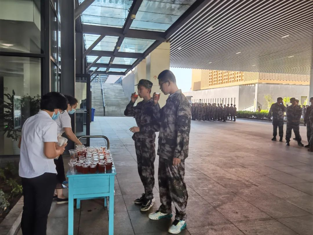 學(xué)校為軍訓營員、教官準備了解暑綠豆湯