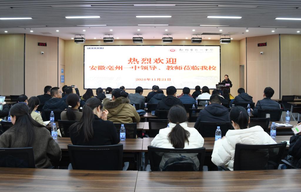 11月(yuè)21-22日(rì),安徽亳州市第一中學黨委書記耿成華帶領骨幹教師一行30餘人來我校考(kǎo)察交(jiāo)流。秦(qín)曉華(huá)書記以《以高品質變革引領(lǐng)高質量發展》為題向亳州來賓詳細(xì)介紹了學校的(de)曆史沿革、辦學特色和辦學業績,重點從提升教(jiāo)育教學質量(liàng),聚焦學生全麵發展(zhǎn),打造優秀教師團隊,擦亮黨建品牌四個方麵分享了徐州一中高質量發展(zhǎn)的特色做法和實踐經驗。