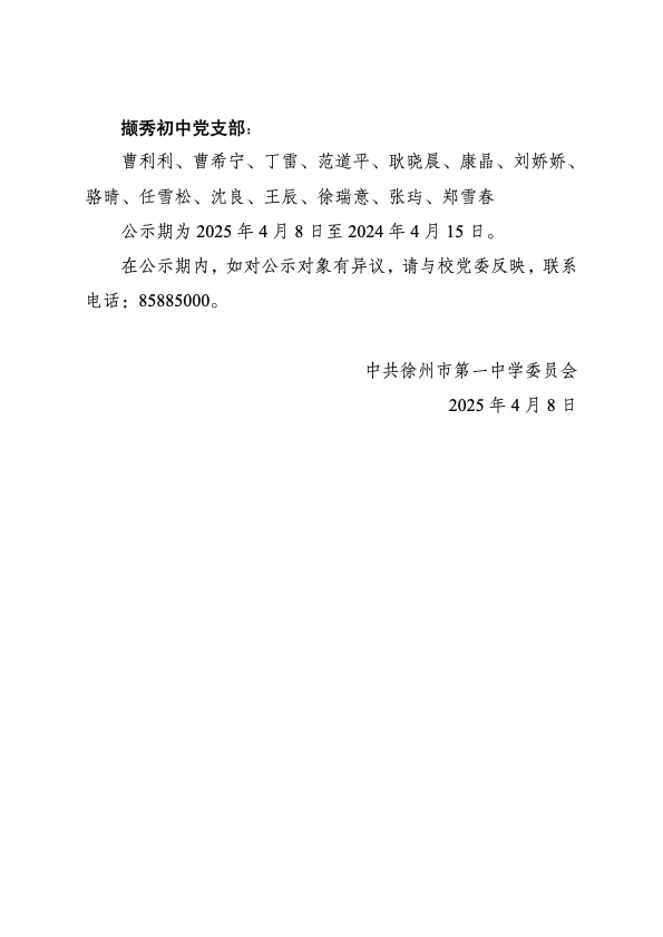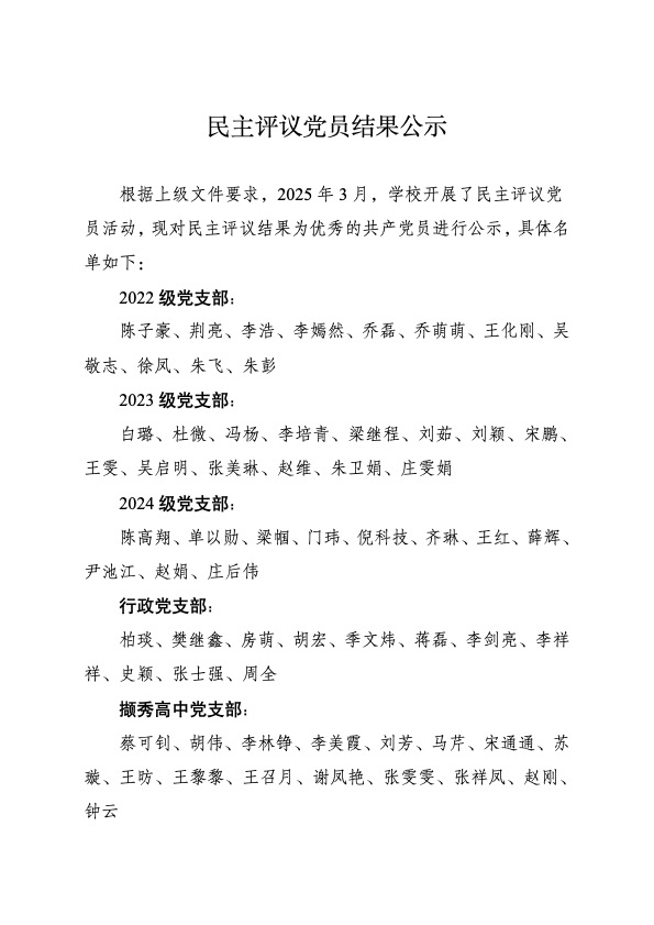 民主(zhǔ)評議黨(dǎng)員結果公示
